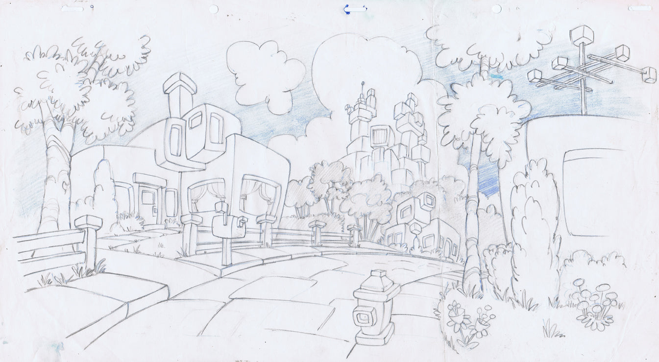 Blue and Graphite pencil on standard animation pan paper